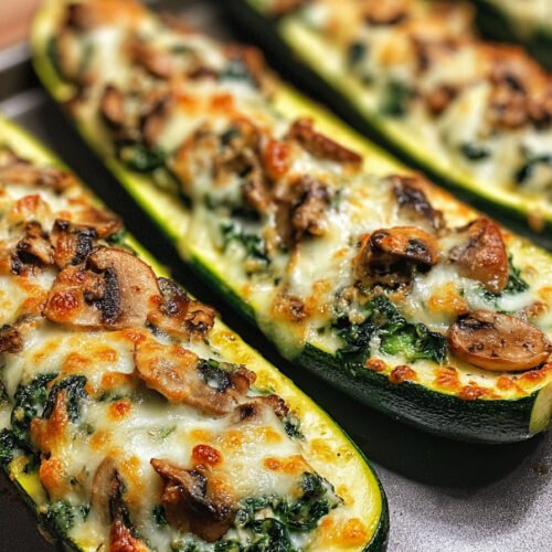 When I think of comforting appetizer recipes, this one always comes to mind. These zucchini boats bring together spinach, mushrooms, and creamy ricotta in a way that feels both hearty and light. I like how the zucchini shells hold everything together, almost like little edible bowls. The blend of spinach and mushrooms offers a flavor that feels familiar, warm, and earthy, while the ricotta softens every bite with a creamy balance. Sometimes I find myself sneaking a taste of the filling before it even makes it into the zucchini. If you’ve been searching for spinach and mushroom recipes or mushroom and spinach recipes that lean on fresh vegetables, this dish might just fit the bill. It’s a cousin to stuffed mushroom recipes, yet with zucchini taking the spotlight. Some call it a stuffed zucchini recipe, I just call it a win for dinner. I like to think of it as an easy stuffed mushroom recipe in disguise, or even a mushroom zucchini recipe with a creamy twist. It’s flexible enough for a weeknight but impressive enough for company, and it always manages to disappear faster than I expect.