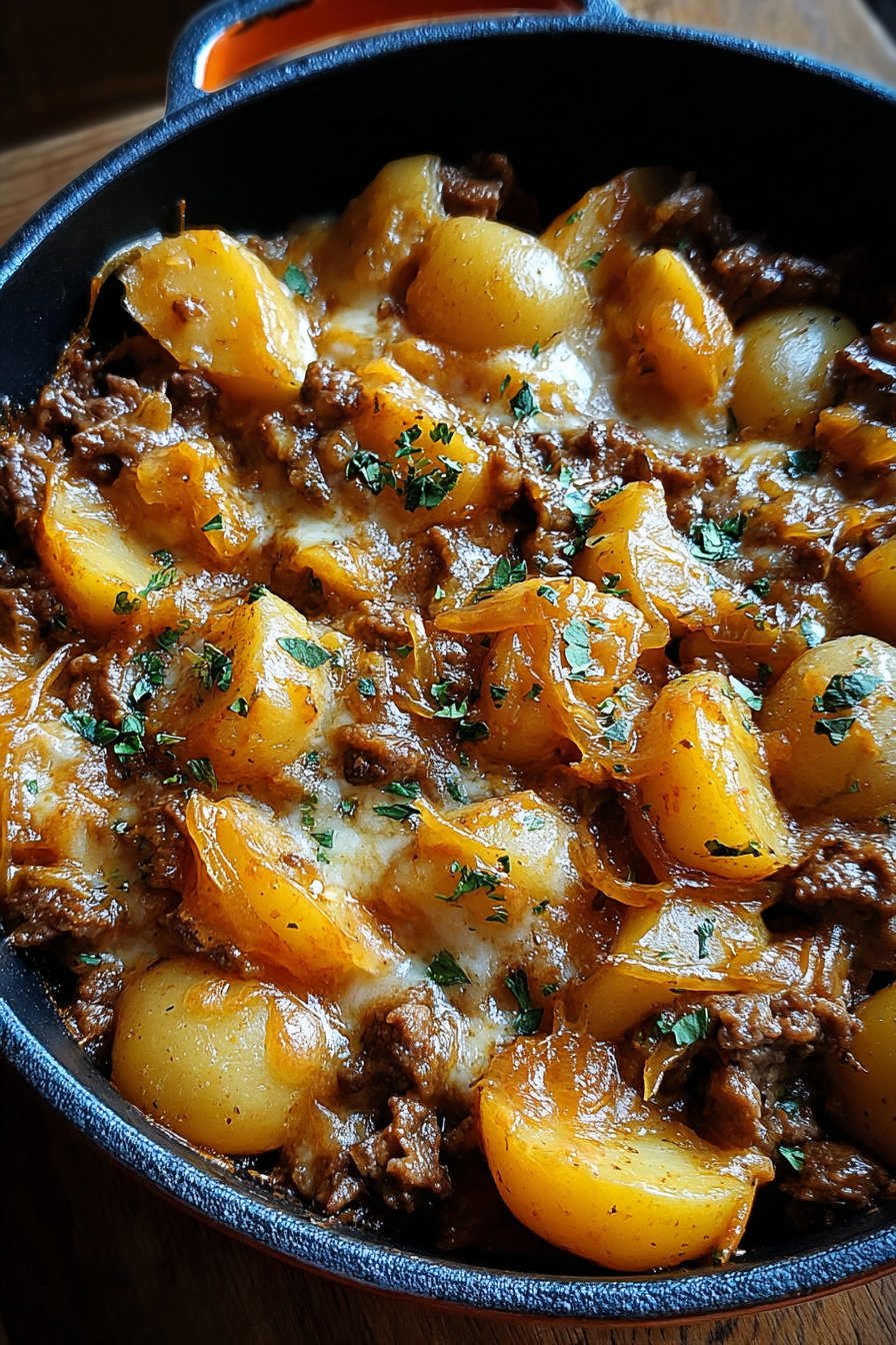 The method stays simple. Brown beef. Layer sliced potatoes. Pour a quick milk and broth mix. Cover and simmer. Lift the lid and add cheese. Let it rest. The spoon meets a hearty pan that feeds a crowd or a small family with seconds.