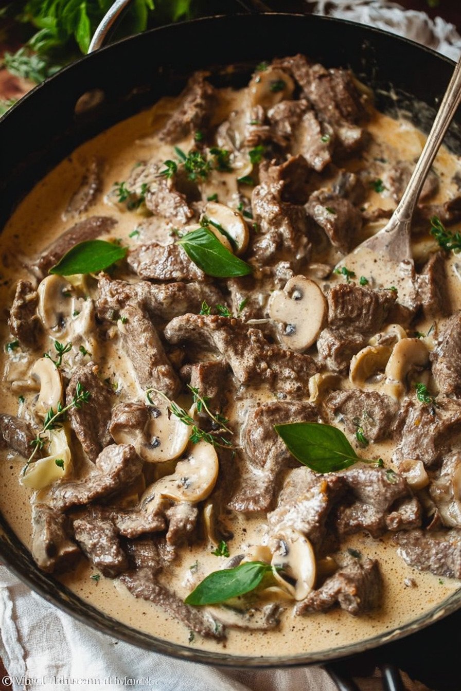 • This beef stroganoff is rich, creamy, and packed with comforting flavors.