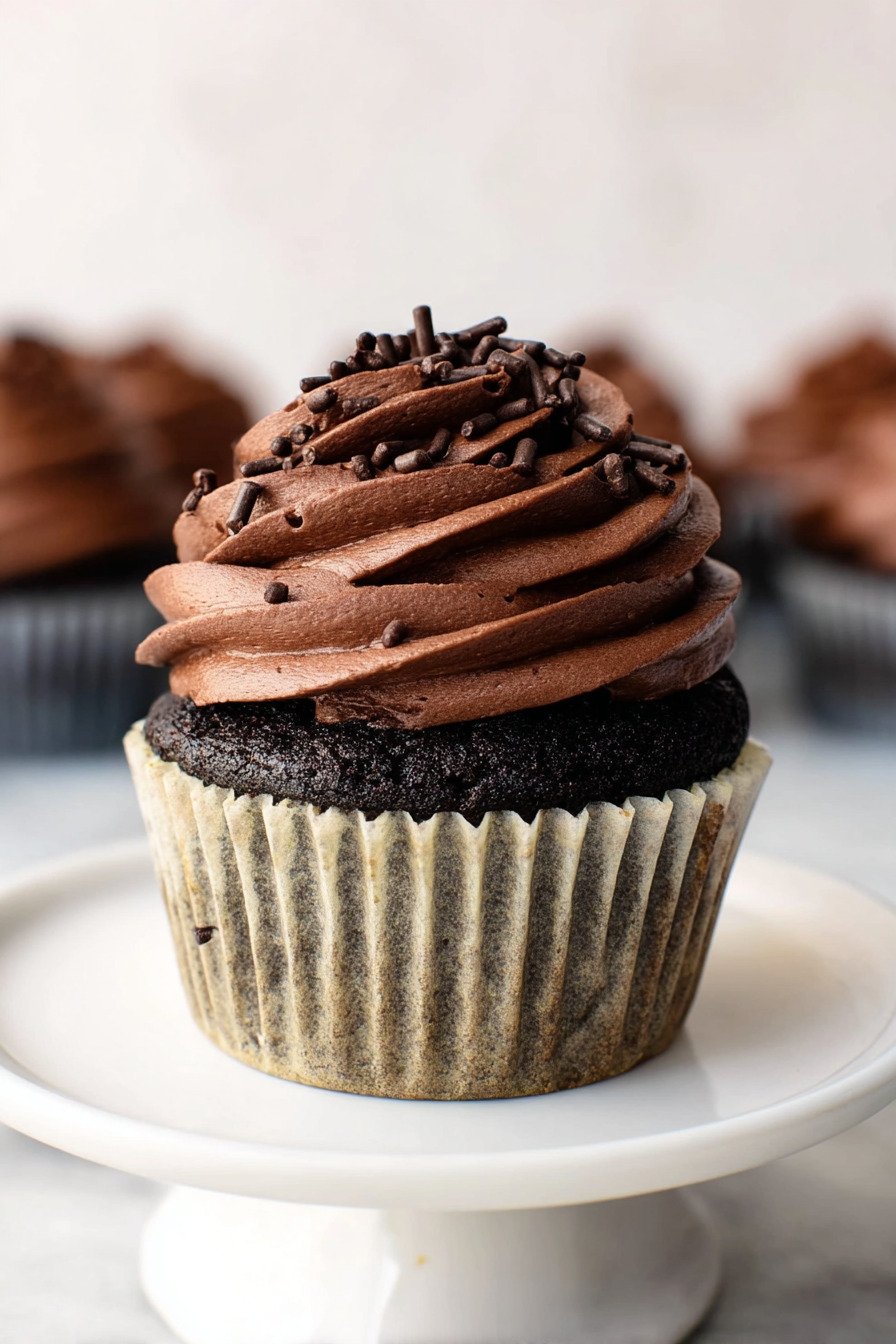 For presentation, wait until the cupcakes are fully cool before frosting so the topping stays fluffy and defined. You can keep the decoration simple for a classic look or dress them up for parties with shavings, sprinkles, or berries. Bakers who enjoy the best strawberry cupcake recipe may also love topping these chocolate cupcakes with a berry garnish for a bright contrast.