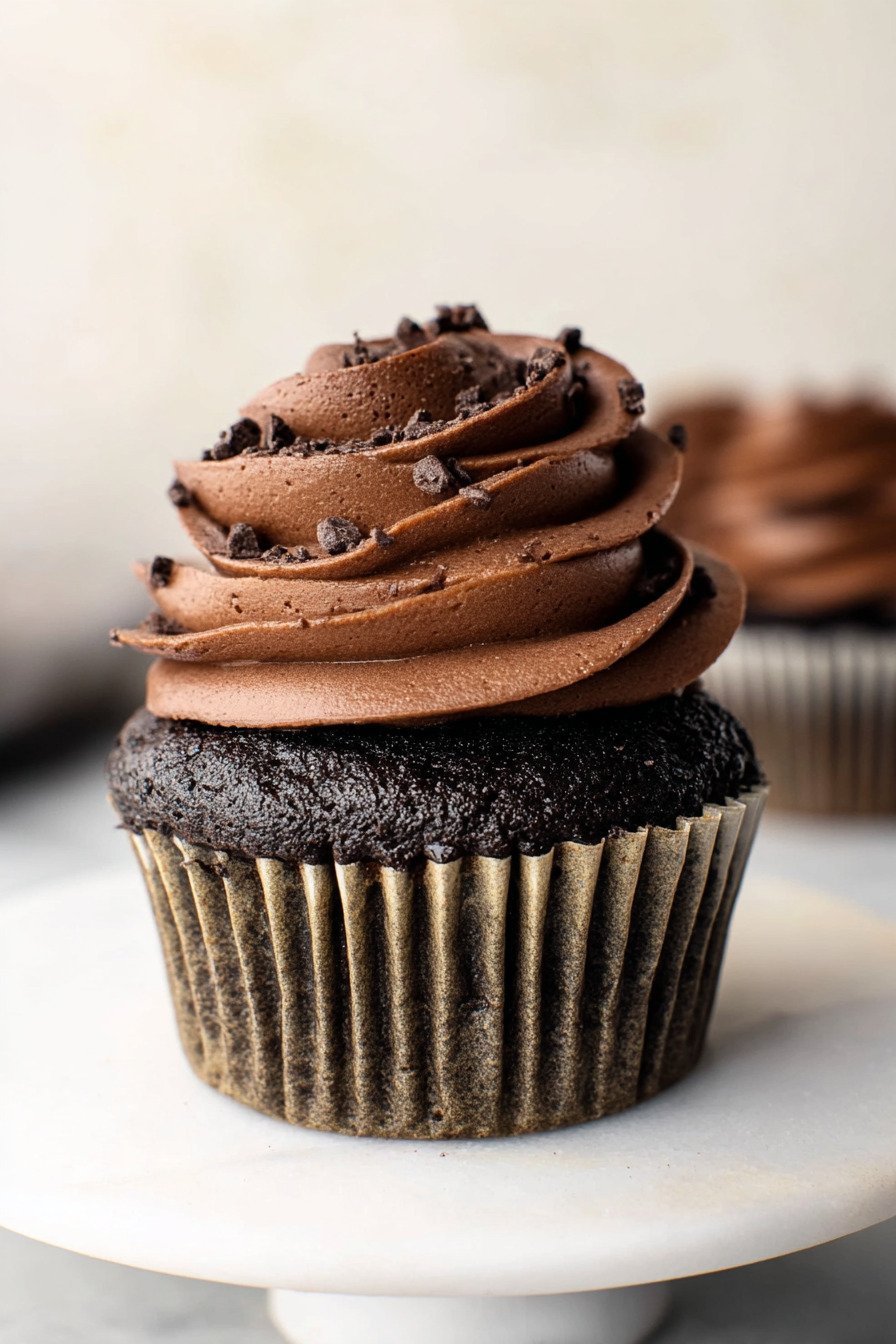 If you want the deepest chocolate flavor, do not skip blooming the cocoa with warm liquid in the batter. This simple step helps intensify the richness and gives the cupcakes that full, classic chocolate taste people expect from a standout dessert. For an extra flavor variation, you can add a touch of peppermint extract to the frosting for a version inspired by Mint Chocolate Cupcakes.