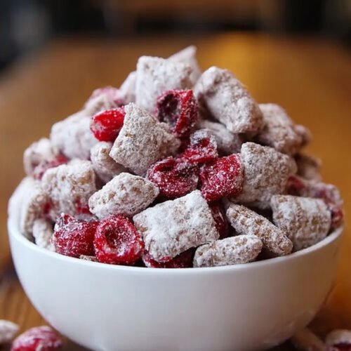 I make this sweet snack when I want cheesecake flavor without turning on the oven. Chex Mix Recipes fit busy weeks and this one tastes like a cherry topped slice. The mix stays crisp and the color looks party ready. We melt white chocolate, toss in rice cereal, and shake with cheesecake pudding. Cherry gelatin gives a bright note that reminds me of pie filling. I grab a big bowl and a big bag so the sugar coats every square. The result feels light yet rich. Kids help with the shaking part and yes they laugh when the cloud of sugar puffs up. This batch leans dessert but lands in the snack zone. It checks boxes for Bold Chex Mix Recipe fans and it plays nice with Cake Mix Desserts on a treat table. If you love a 6 inch cheesecake recipe or quick ideas like 2 Ingredient Desserts you will feel at home here. Cherry dessert recipes bring a bright pop and Cheesecake recipes bring comfort. We get both in one friendly handful.