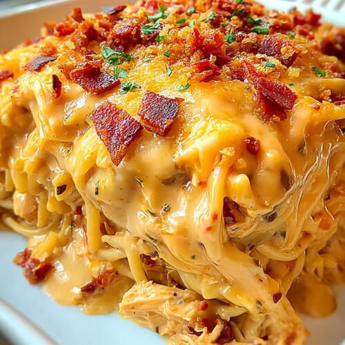 This casserole pulls together tender chicken, creamy soup, melted cheese, and pasta in one dish. It is hearty, filling, and built for sharing at family tables. What makes it stand out is the balance of spice and comfort. You get the cozy vibe of a cheesy casserole with a kick of Southern flavor. It is simple to prepare and makes enough to feed a crowd.