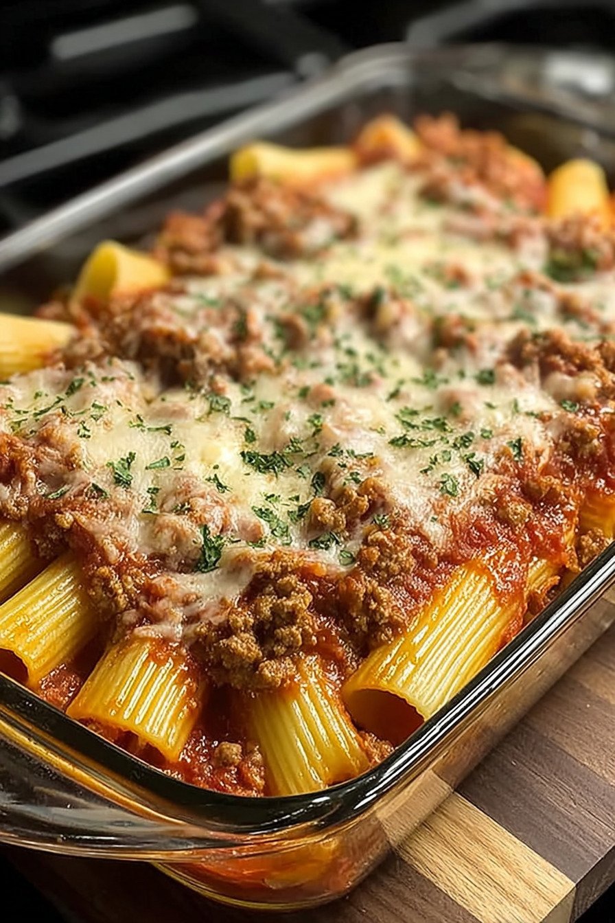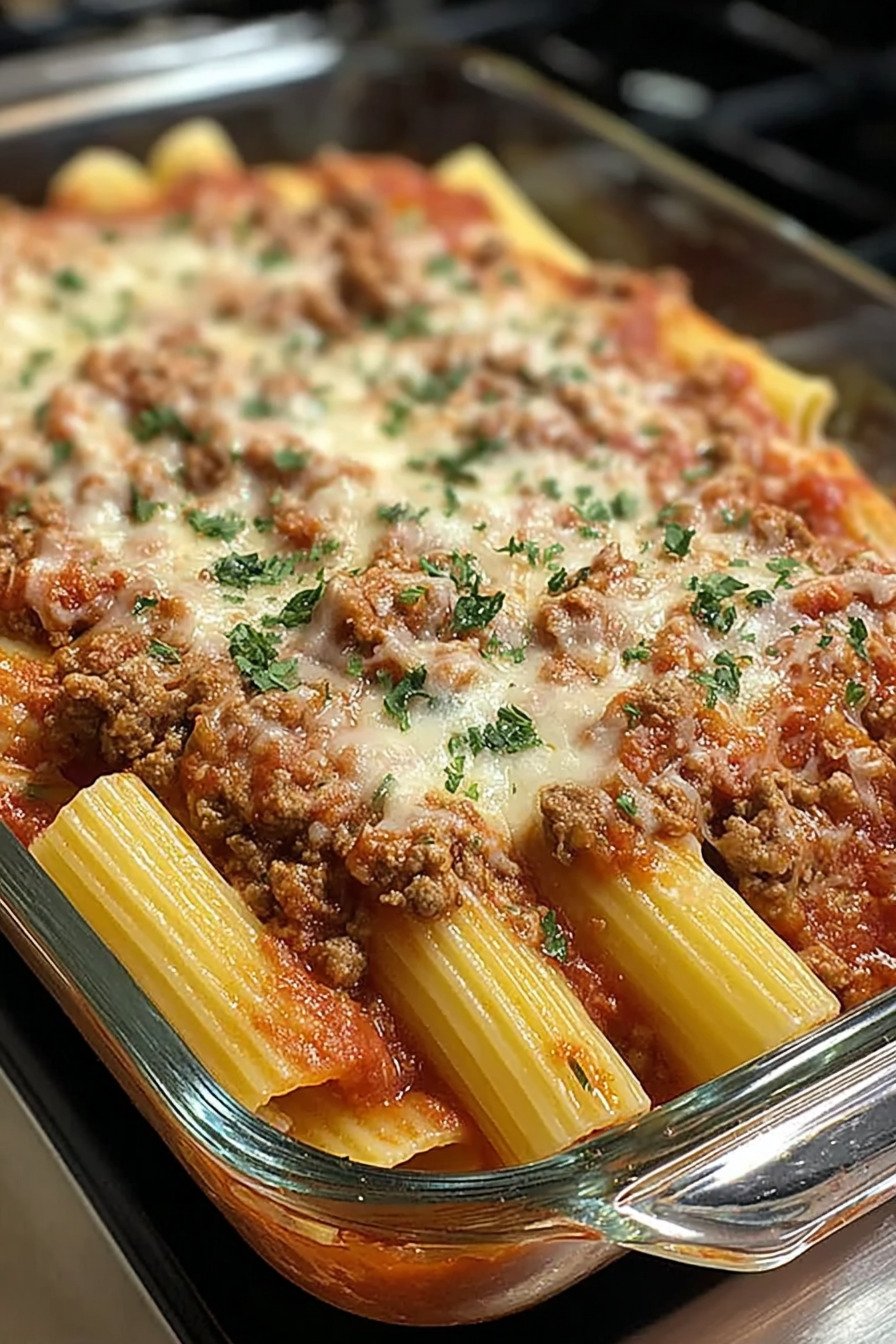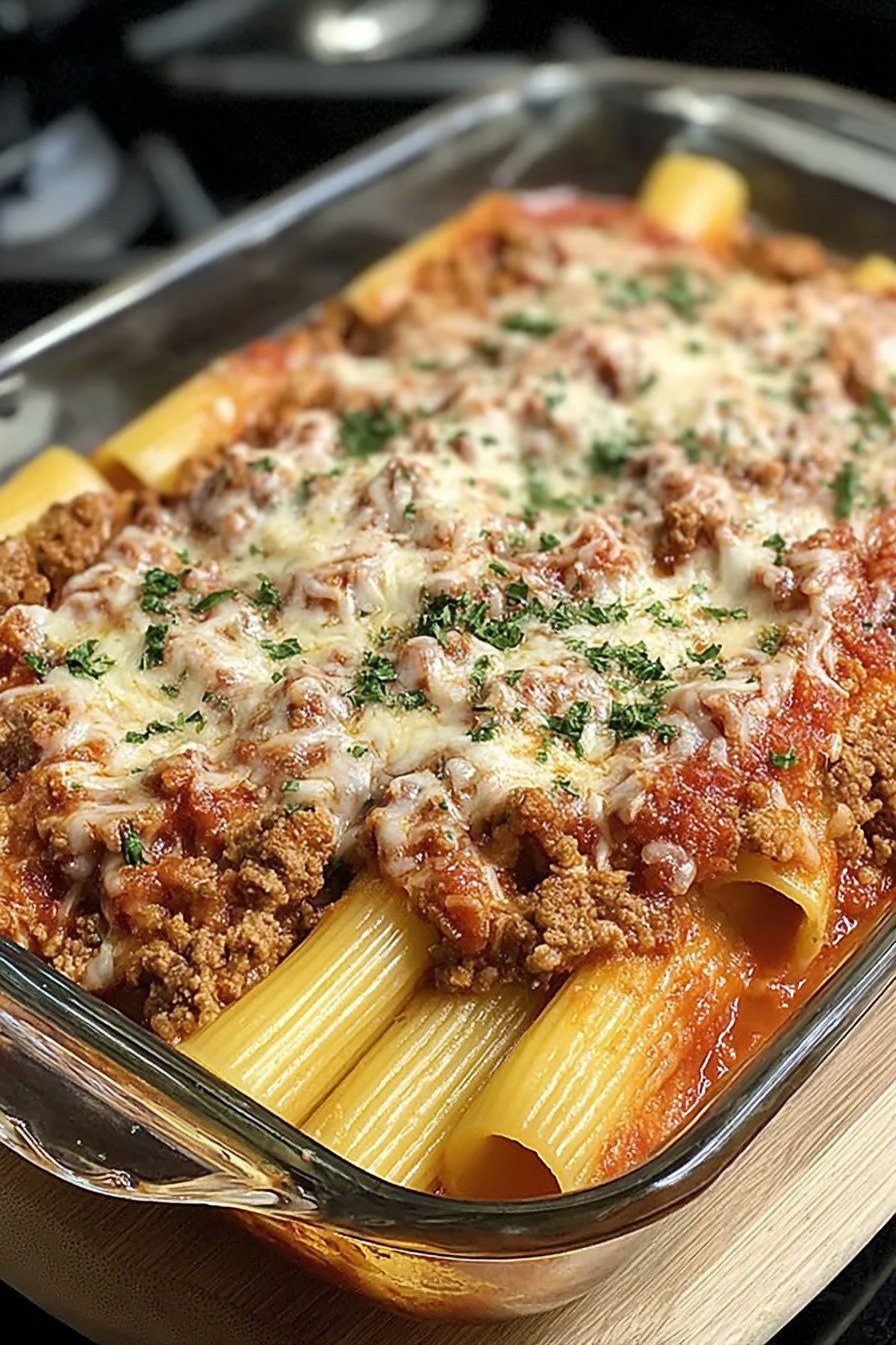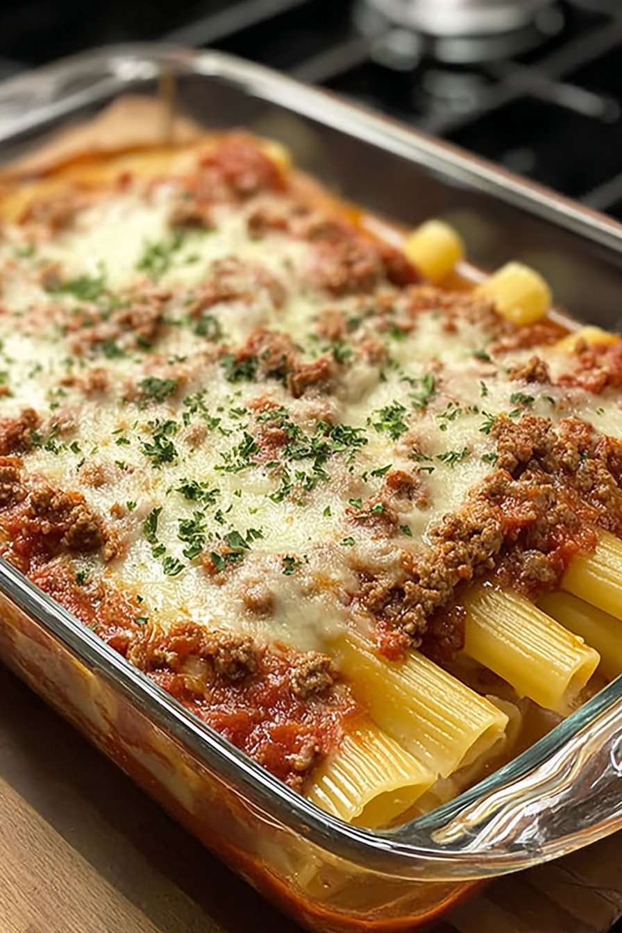 The flavors blend during the rest time. The sauce sinks into the pasta and the cheese filling sets. That quiet rest gives the baked pasta a deeper flavor.