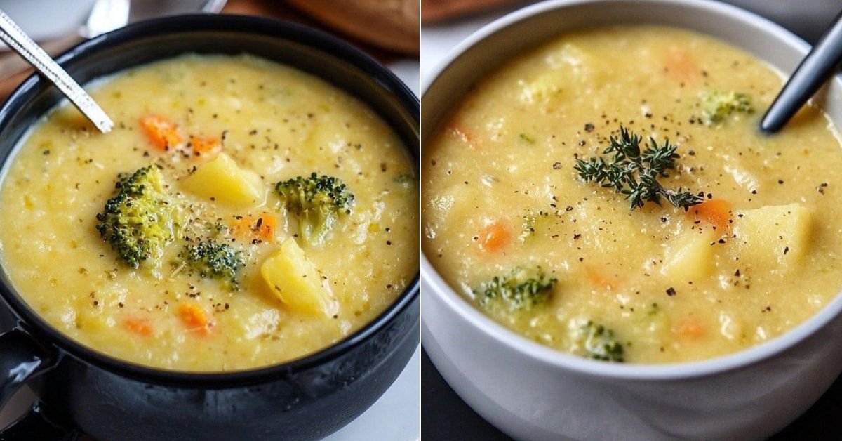 2) Easy Broccoli Potato Cheese Soup Recipe