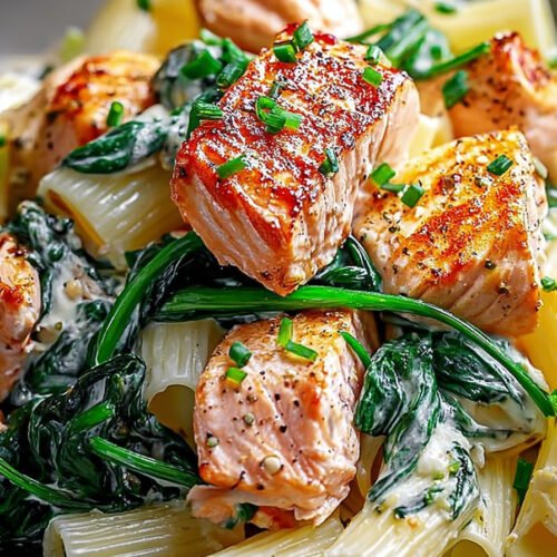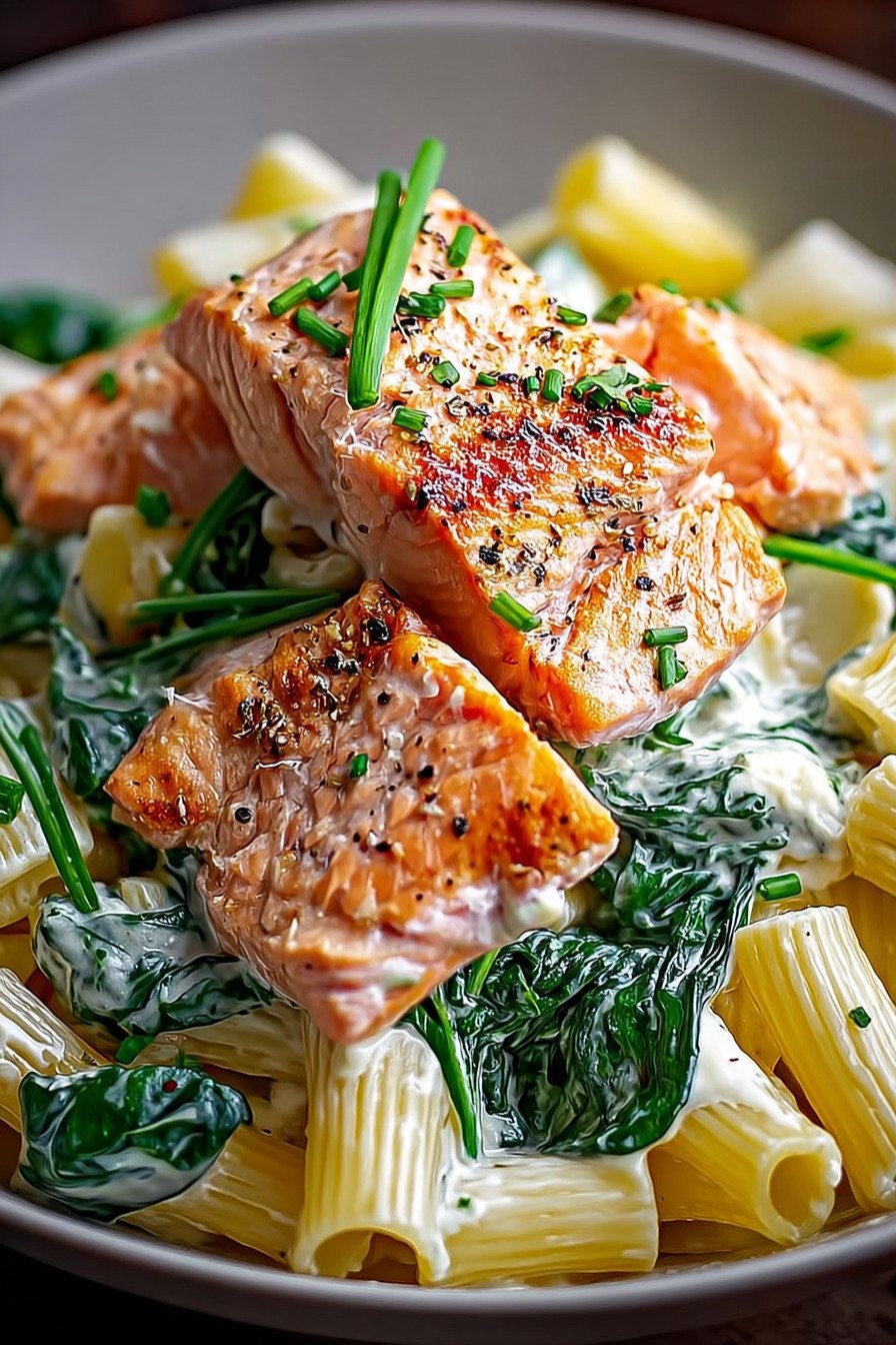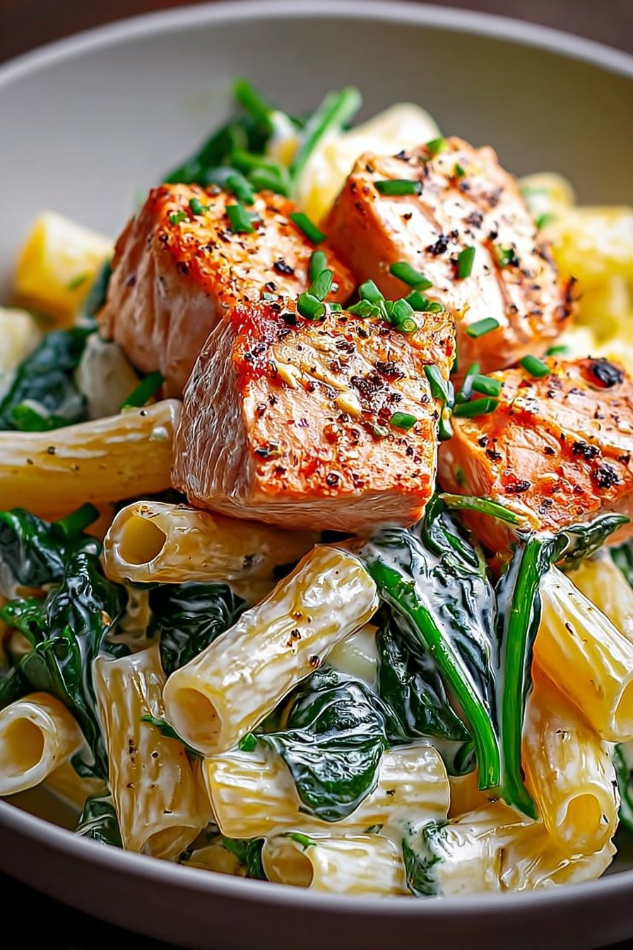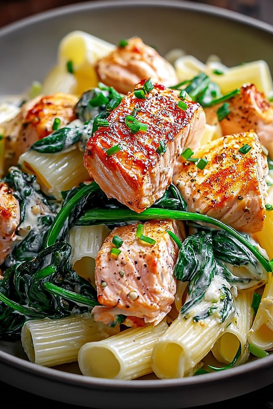 Keywords: easy salmon dinner ideas, healthy salmon dinner, nutritious spinach recipes, salmon pasta recipes, spinach dinner dishes, spinach dinner recipes, spinach pasta recipes