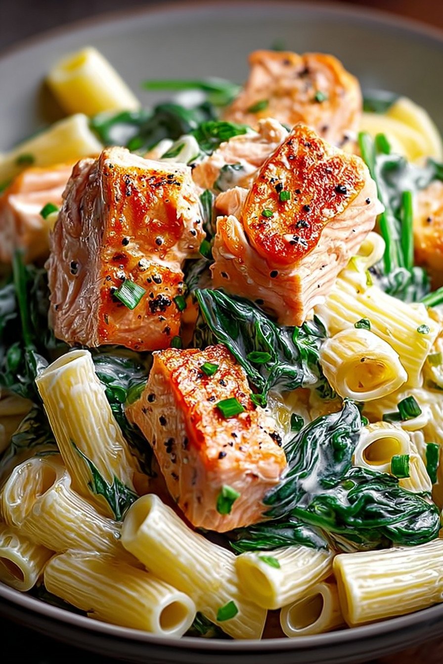 • 2) Easy Creamy Salmon Spinach Pasta Recipe