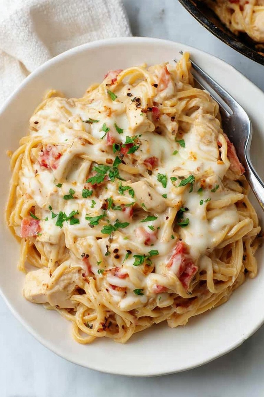 Think of this as slow cooker chicken pasta ideas with heart. The noodles soak up flavor. The tomatoes add lift. The finish looks golden if you slide the dish under a hot oven for a short spell. You get a bowl that feels like a hug and a plan that saves your evening.
