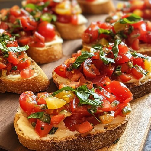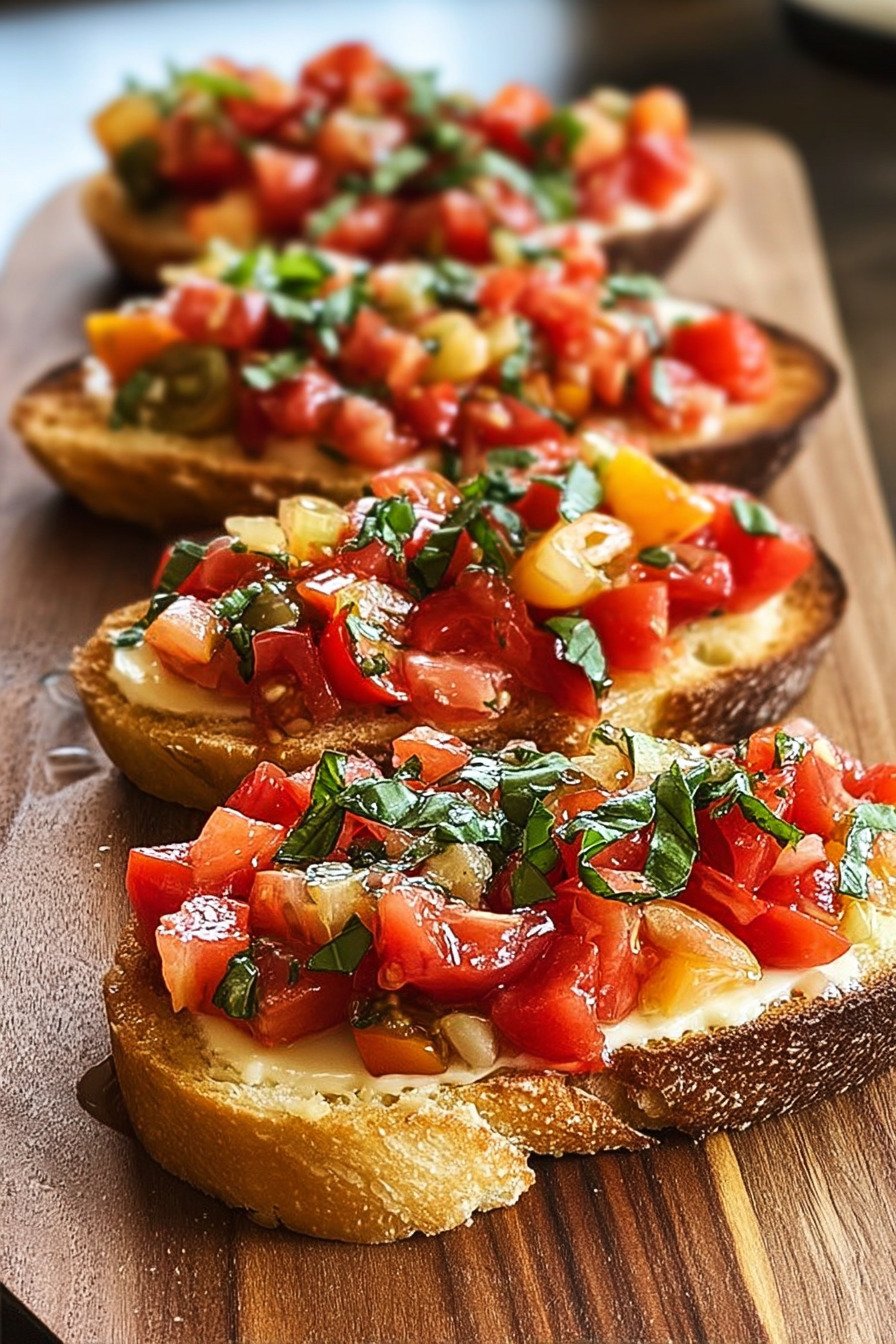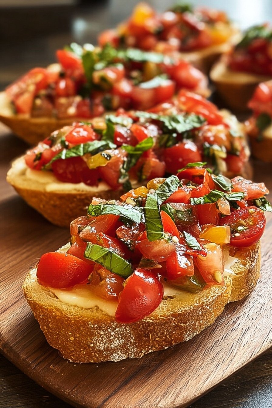 Another idea involves small changes in topping. Some nights I turn the dish into a caprese bruschetta recipe with mozzarella pieces. On cooler evenings I cook mushrooms and spoon them over toast for a warm bite. Both versions still follow the spirit of the classic appetizer.