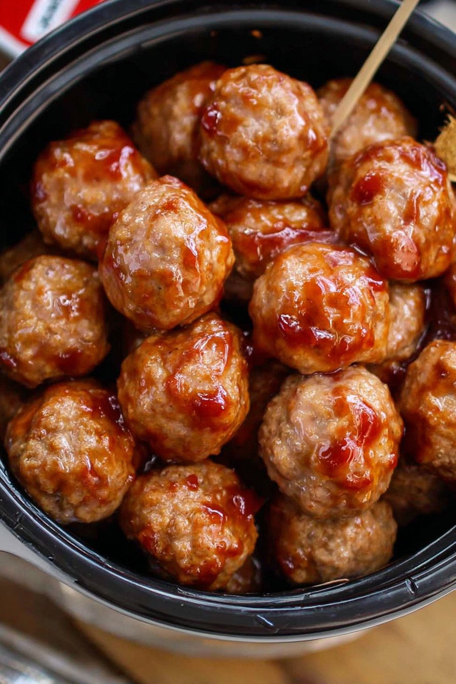 When we talk about party food in my kitchen one dish always wins. These sweet sticky meatballs cook low and slow and they fill the house with a smell that pulls people straight into the kitchen. I built this recipe on simple pantry items and a bag of frozen meatballs. The slow cooker does the heavy lifting and the cook gets the credit.