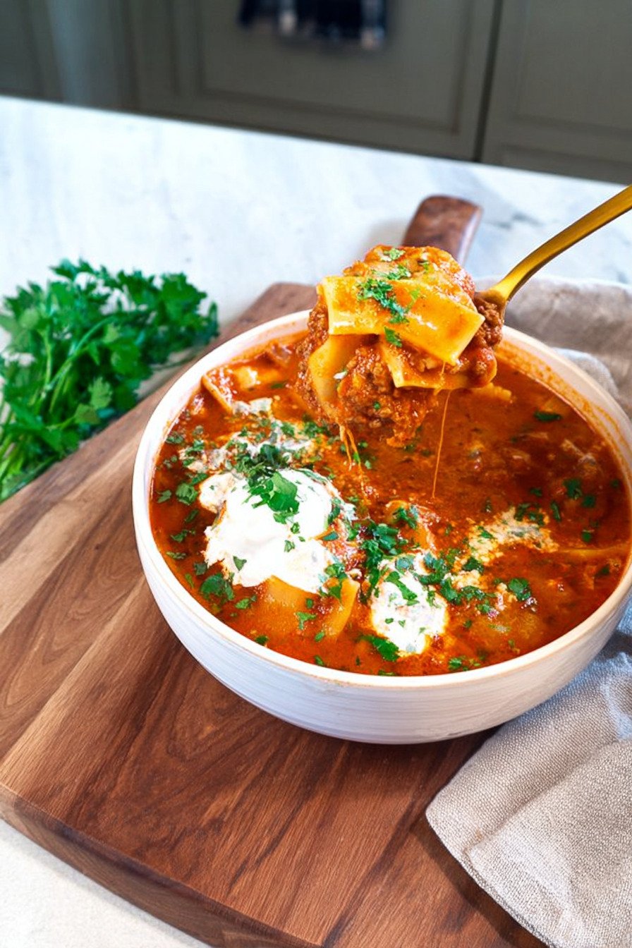 - This lasagna soup recipe turns classic lasagna flavors into a cozy, one-pot dinner that feels hearty and comforting without the extra work.