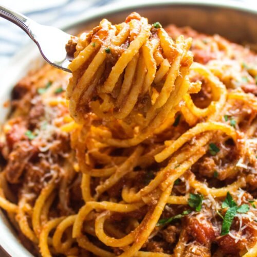 • This one pot spaghetti recipe is quick, easy, and perfect for busy weeknights.