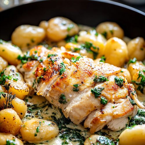 When I say this garlic chicken gnocchi skillet is comfort food at its finest, I mean it. We’re talking about soft, pillowy gnocchi, juicy chicken, and a creamy garlic sauce that clings to every bite. The beauty of this dish is how quickly it comes together—one pan, minimal effort, and maximum flavor. I’ve made this on nights when I wanted to skip the endless pile of dishes, and let me tell you, it feels like winning. The kind of win where your family thinks you’ve been secretly trained in some Italian kitchen, but really, you just had 30 minutes and a skillet. This is the kind of recipe I reach for when I crave something hearty yet easy. It belongs in your weekly dinner rotation, especially if you’re into comfort food recipes, One Pan Recipes, Chicken Skillet Recipes, One Pan Pasta Recipes, One Skillet Meals, pan chicken recipes, or even easy creamy chicken recipes. In short—it checks all the boxes.