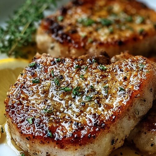 • This recipe creates juicy pork chops with a crispy garlic parmesan crust.