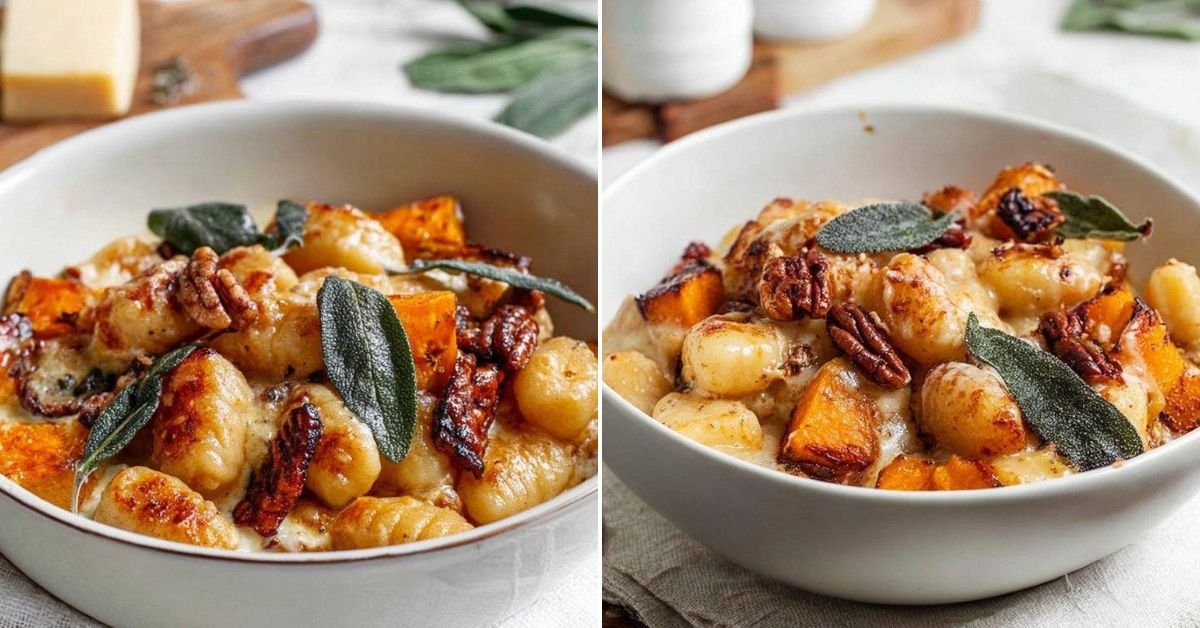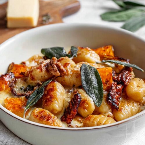 I make this on a cold evening and the kitchen smells like roasted pumpkin and butter. We start with soft gnocchi and a creamy sauce, then tuck in sage and a handful of pecans. It is calm, warm, and easy. This sits in the sweet spot between a quick supper and a hug in a bowl. Gnocchi Recipes fit right into our week, and this one lands on repeat. We bake it like the best Baked Casserole Recipes and it gives the same joy as Baked Pasta Recipes. The edges turn golden and the middle stays tender. I love that the whole dish feels like Autumn Recipes at their peak. Use butternut or a firm pumpkin for rich color and mild sweetness so it matches the cheese and herbs. Italian Food comfort meets simple steps and a short ingredient list. Steam rises, the top bubbles, and the spoon slides through soft dumplings. You hear a light crackle from the cheese, then a nutty crunch from the pecans. We scoop big portions and breathe in the sage. This is Comfort Food Recipes the way I like it. Warm. Honest. Straight to the table.