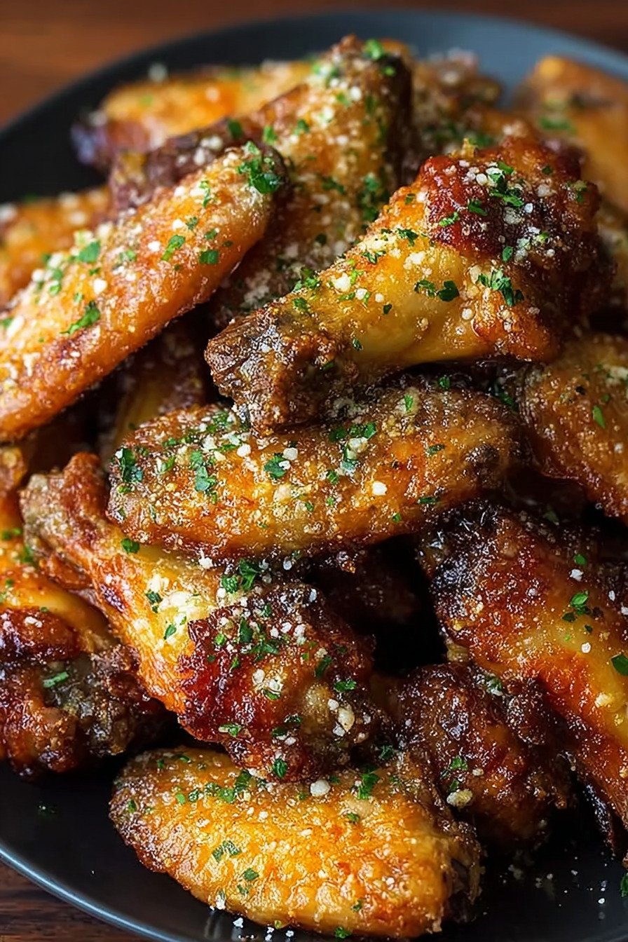 One thing that sets this easy chicken wings recipe apart is the garlic butter sauce. We’re not just sprinkling some seasoning on here and calling it a day. Nope, we’re tossing these bad boys in a rich, garlicky, parmesan loaded sauce that coats every single wing. It’s the kind of recipe where you’ll find yourself licking your fingers and not caring who sees you.