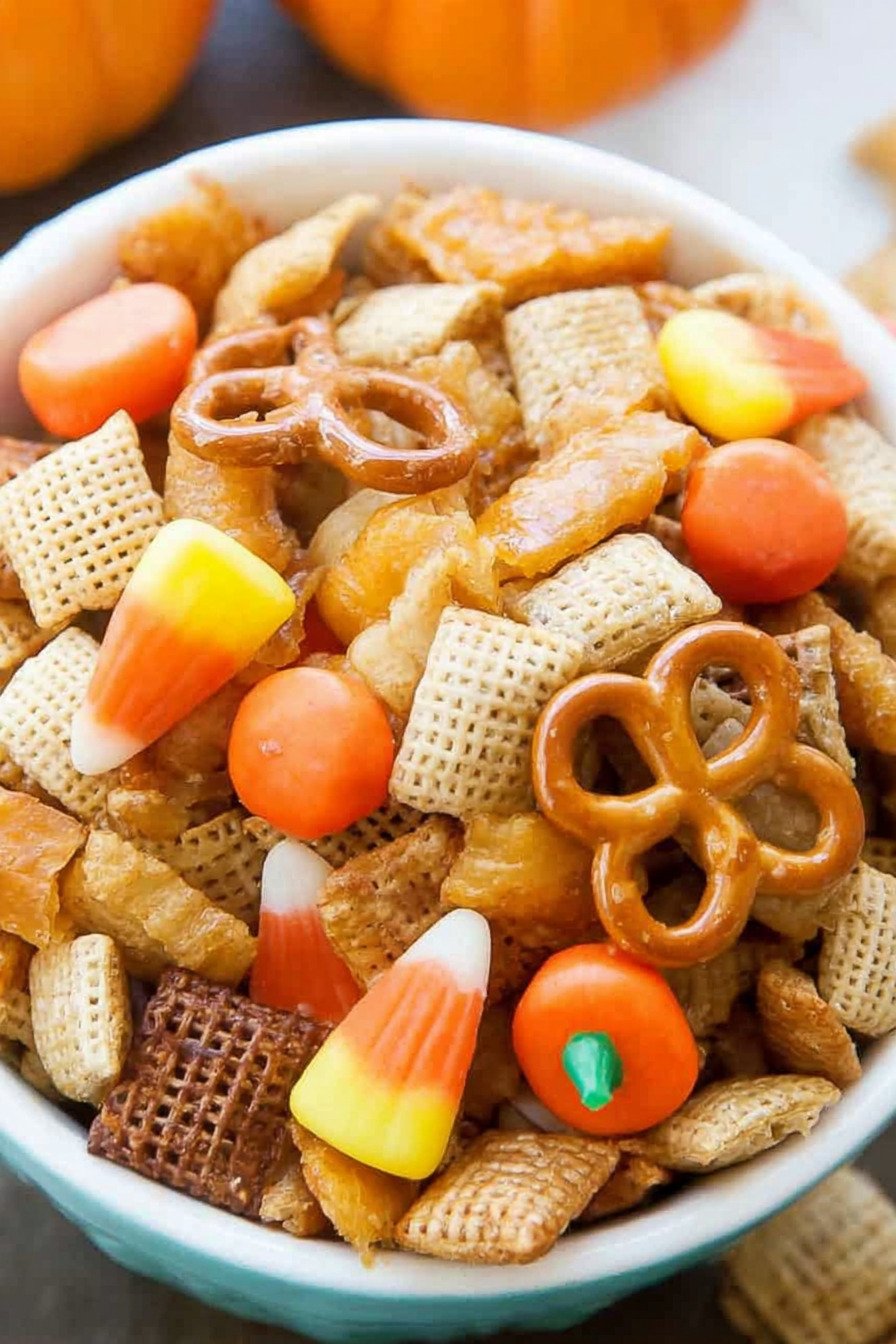 If you enjoy homemade party snack mix recipes with a fall twist, this one will feel right at home in your kitchen. We get texture from cereal and pretzels, depth from butter and maple, and a pop of sweetness from candy corn. It feels nostalgic in the best way.