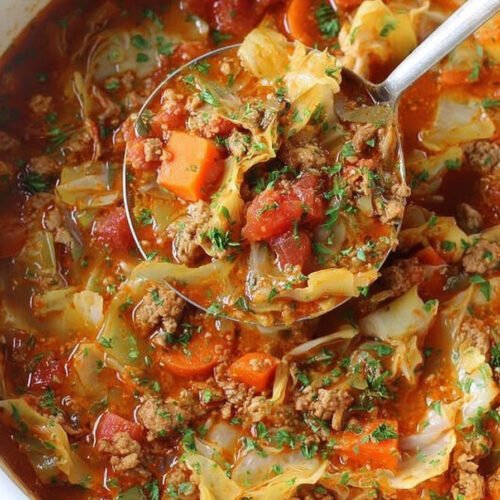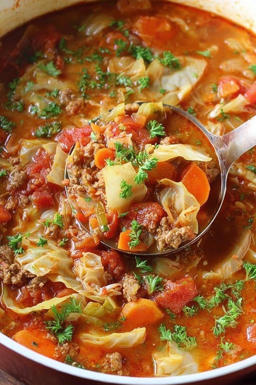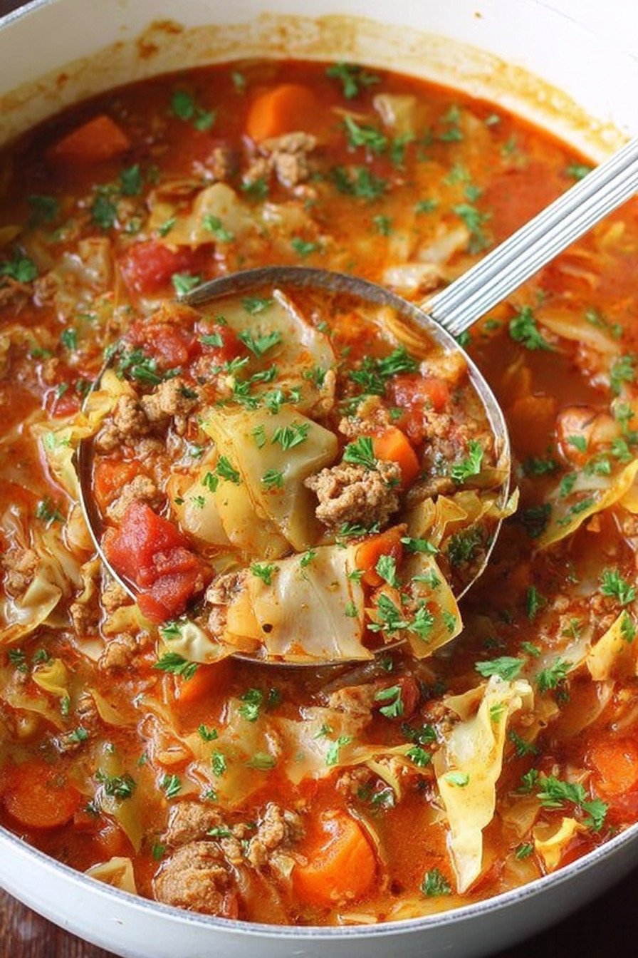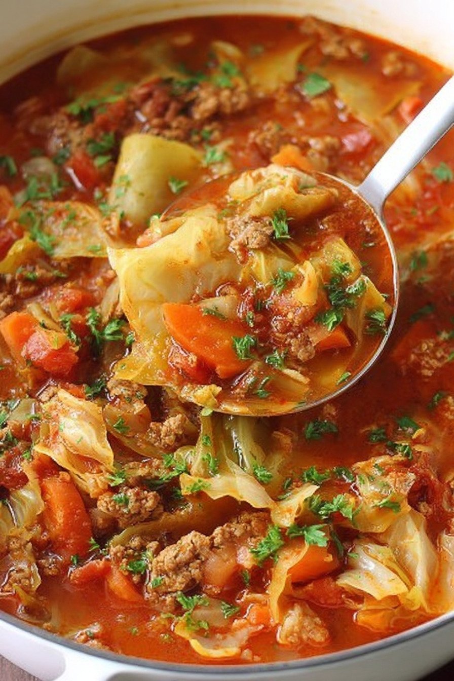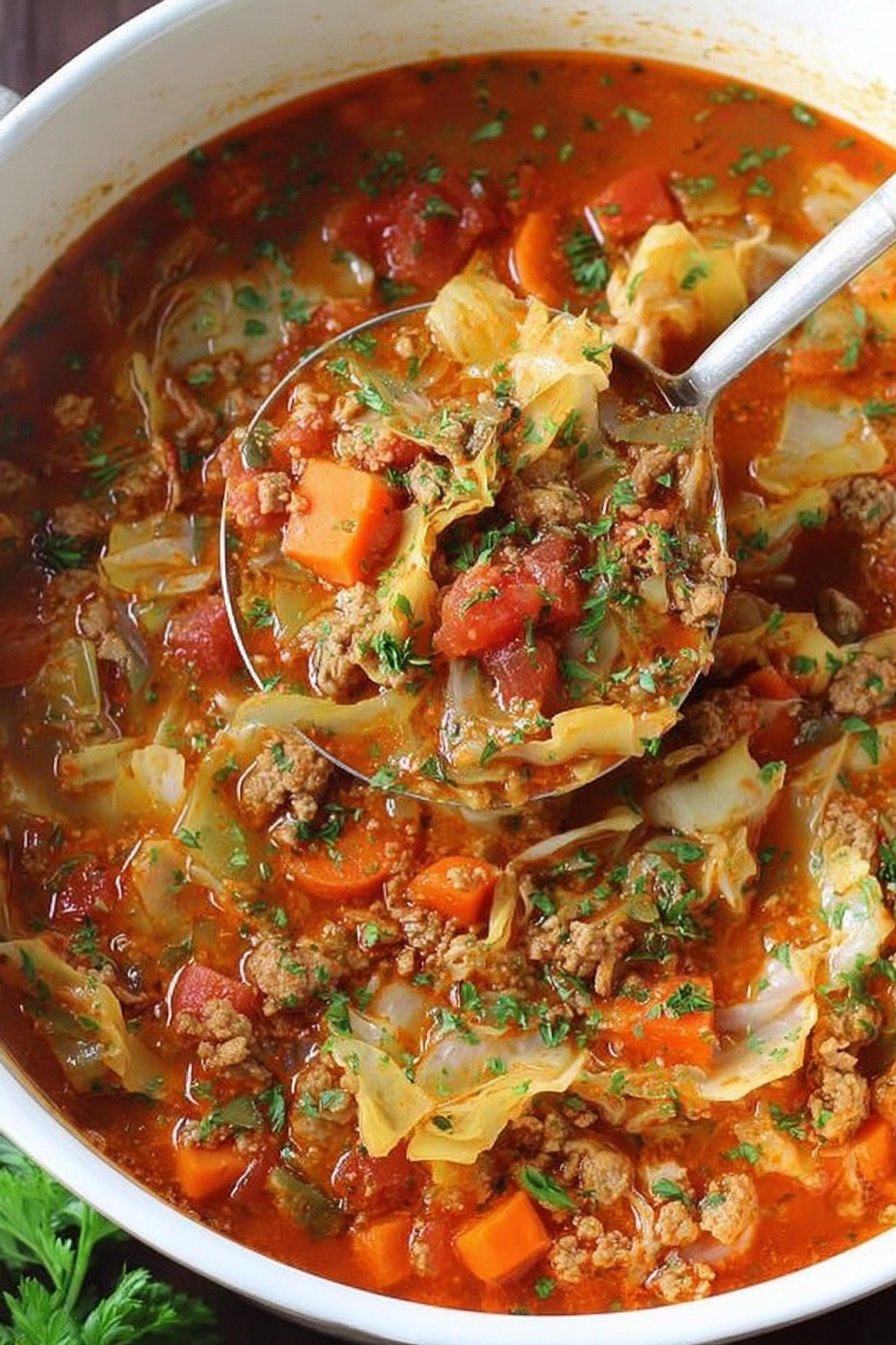 If you’re searching for comforting yet healthy Low Calorie Soup Recipes, this cabbage roll soup is exactly what you need. It combines all the flavors of classic cabbage rolls into an easy, one-pot meal that fits perfectly into your weekly rotation of Cabbage Dinner Ideas and Calorie Controlled Meals. With simple ingredients and bold taste, this soup delivers satisfaction without the extra calories. This recipe is ideal for anyone exploring Cabbage Meals Dinners that are both hearty and nutritious. Packed with lean protein, vegetables, and rich tomato flavor, it’s also one of the best Carb Free Recipes you can make at home. Plus, it’s naturally part of your go-to Gluten Free Recipes, making it suitable for a variety of dietary needs. Whether you’re meal prepping or cooking a quick dinner, this dish stands out among Low Calorie Soup Recipes thanks to its simplicity and flavor. It’s a perfect solution when you want something warm, filling, and aligned with your healthy eating goals, while still enjoying the comfort of classic cabbage dishes.