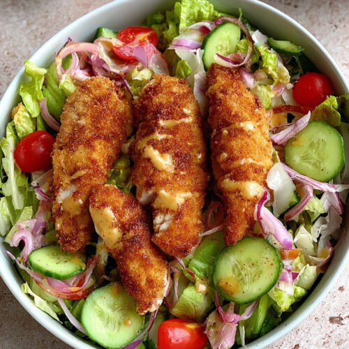 Think about this salad as flexible. Swap cheddar for feta if you prefer. Use spinach if kale feels too strong. That’s the thing with easy chicken tender recipes: they adapt. It means you can make it work with what’s in your fridge without losing flavor.