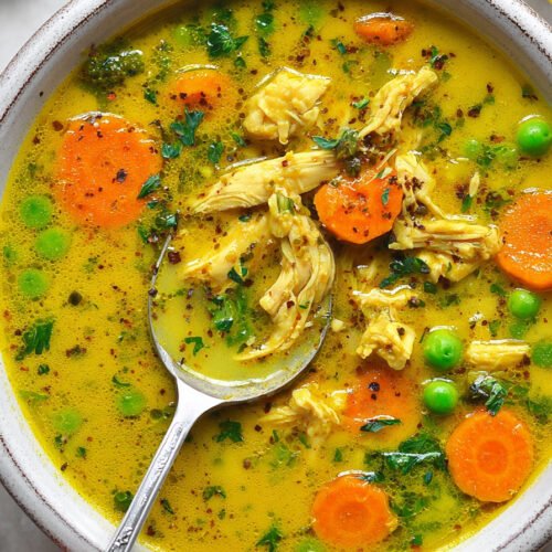 When I first started playing around with turmeric in soups, I didn’t expect it to become one of my go to ingredients for comfort and health. This turmeric chicken soup feels warm in a way that goes beyond the bowl. It’s the kind of meal you reach for when your body asks for something gentle yet nourishing. The golden color always makes me pause for a second before that first spoonful. It’s like the soup itself promises calm. With chicken for protein, vegetables for balance, and turmeric for that gentle anti inflammation support, it’s both familiar and slightly new every time I make it. I keep this recipe close whenever I want a healthy hearty soup that doesn’t taste like ‘health food.’ It feels real, like the kind of thing you can serve on a busy weeknight or carry to the table when friends come by. It sits somewhere between everyday cooking and a small act of care for yourself. That’s why it fits right at home with healthy soup recipes and why it stands out as one of my favorite anti inflammation recipes dinner.