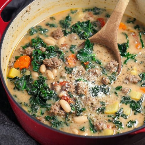 I make this on a cool night when the house feels quiet and we all want one warm bowl that hugs back. Healthy Soup Recipes guide my choices here as I build a cozy white bean soup recipe with rich Italian sausage and bright greens. The broth smells savory and clean. The beans taste creamy. Each spoonful feels simple and kind. We use Tuscan kale soup ideas that keep the leaves tender yet sturdy. I add potatoes for body and lift the flavor with a small splash of vinegar. The sausage browns and leaves little golden bits that we pick up with the stock. That step deepens the base and makes the soup feel like a weekend even when it is Tuesday. We call it our Italian sausage soup night and no one complains about dishes. This bean and kale soup cooks in one pot and works for lunch the next day. I like how the beans soften more with time. I like that we can freeze a batch and come back to it when life gets busy. For friends who want healthy Italian soups or healthy bean soup recipes that taste like real food and not a project, this is the keeper that lives on my stove and in my notes.