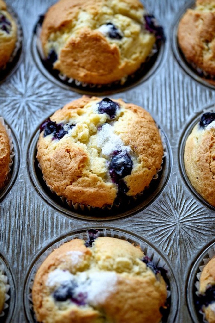 I bake these on quiet mornings when the house still feels sleepy. I call them blueberry muffins and I mean it. Big berries burst. Lemon lifts the crumb. The tops get a light sugar crunch that makes a soft crack when you break one open. This riff comes from family weekends. I zest a lemon into the butter and laugh as the kitchen smells like sunshine. The batter stays thick. A spoon stands tall. Kids sneak berries. I pretend not to see. We load the pan and dust the tops with sugar. They go in and I set a timer and sip coffee. Peace. Searchers find this as a lemon blueberry muffins recipe and call it the best blueberry muffins recipe. Friends with a starter keep a sourdough blueberry muffins recipe on hand. Fans of lemon blueberry dessert recipes bookmark this and keep it near the best lemon cake recipe and even the best lemon chicken recipe. Call them what you like. Warm muffins fix the day.