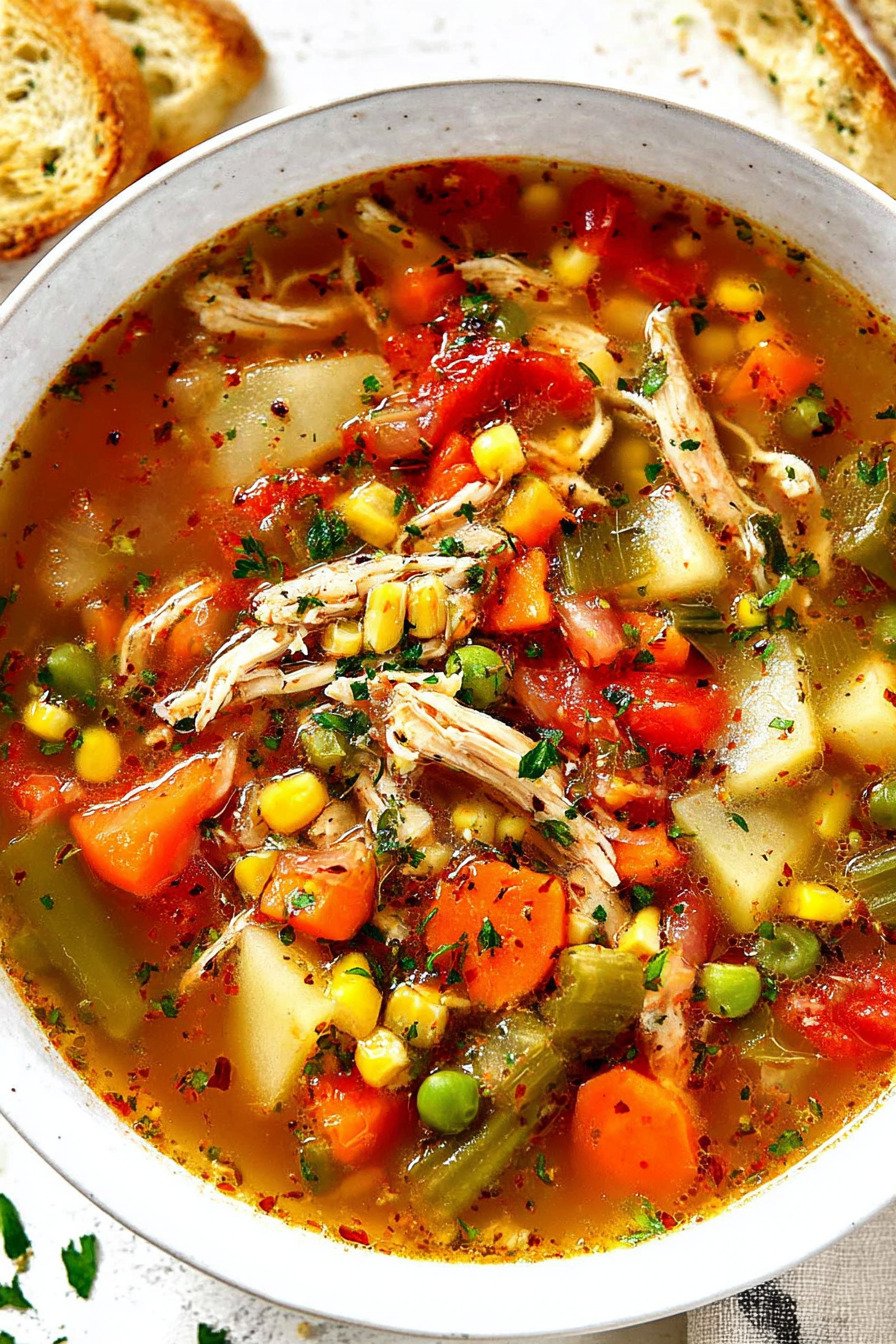 You know that feeling when you’re craving something warm and filling but don’t want to feel guilty afterward? This Chicken Vegetable Soup Recipe hits that sweet spot perfectly. I’ve been making this soup for years, and it never gets old. What I love most is how flexible it is. Got some random veggies hanging out in your fridge? Toss them in. Want to use rotisserie chicken instead of cooking from scratch? Go for it. This Healthy Low Calorie Soup comes together in about an hour, but the flavor tastes like you’ve been simmering it all day. The secret is in those golden bits you scrape up from searing the chicken – they add so much depth to the broth. I usually make a big batch of these Homemade Soup Recipes on Sunday and portion it out for the week. It freezes beautifully too. My kids actually ask for seconds, which says a lot since we’re talking about a soup packed with vegetables. The combination of tender chicken, hearty potatoes, and fresh green beans makes this one of my go-to Low Calorie Chicken Recipes when I’m trying to eat lighter without sacrificing taste. Plus, with all these colorful Vegetable Soup Recipes Healthy ingredients, you’re getting tons of nutrients in every bowl. It’s basically a hug in a bowl – a Low Fat Chicken Soup that doesn’t taste like you’re missing out on anything.