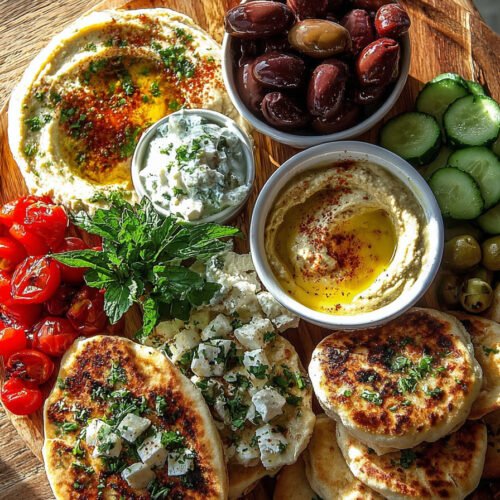 Flatbreads warmed until soft. Tear into wide wedges. Bread carries every dip and keeps the board cozy. Keep a clean towel over the stack so heat stays in and edges stay supple.