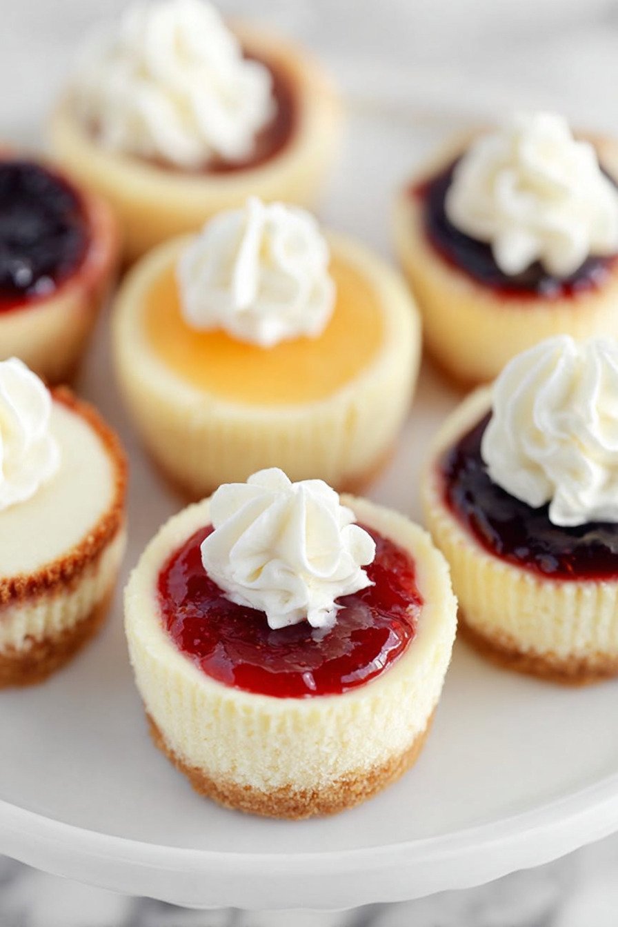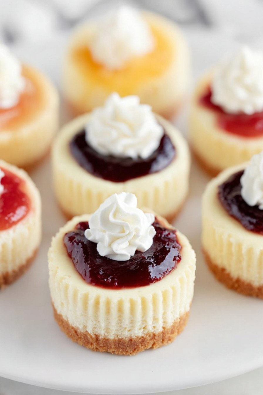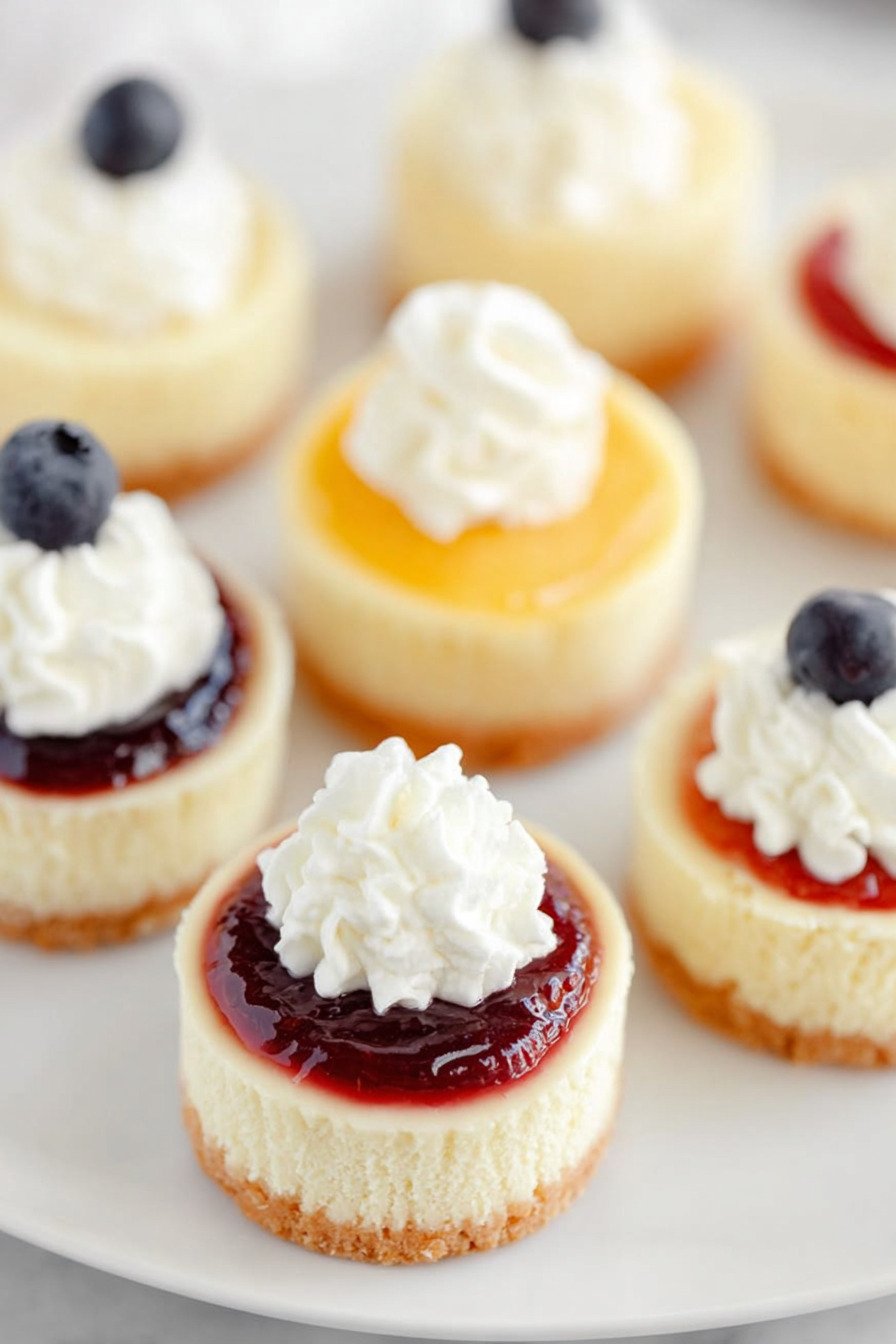 For toppings prep fruit and sauces ahead. Keep whipped cream cold. Bring cheesecakes to the table and let folks pick their favorite. That choice turns a simple tray into a small dessert bar.