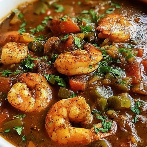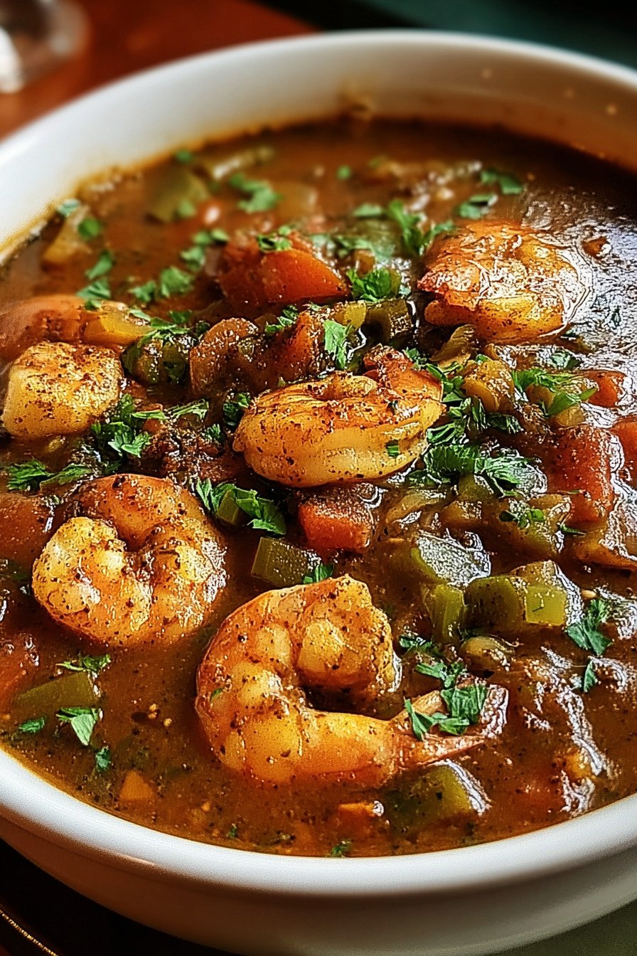 Keep rice separate until serving. The grains stay light and the broth stays clear. Reheat gumbo on low so the texture holds and the shrimp stays tender.