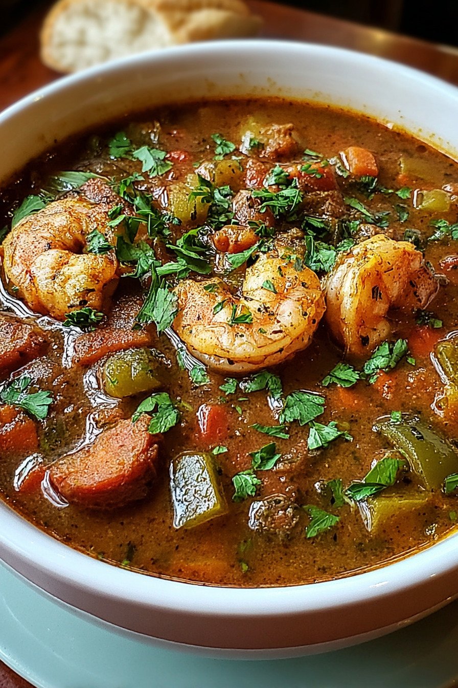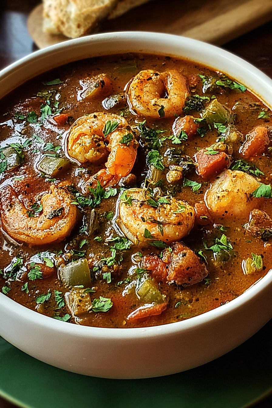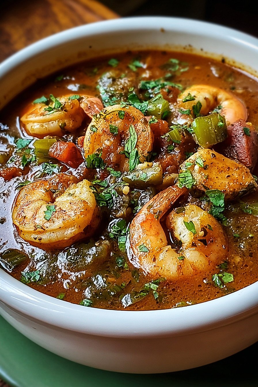 Hold the shrimp for the end. The meat cooks fast and stays tender. If you crave seafood gumbo with shrimp as the star, this small move keeps texture on point.