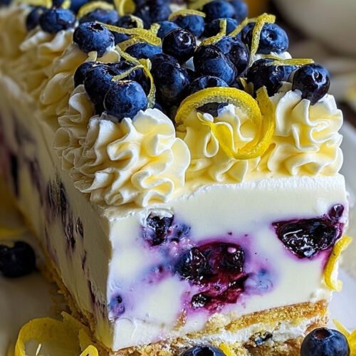 I made this creamy lemon blueberry dream on a warm afternoon and it felt like a cool breeze in a pan. Bright lemon meets sweet berries and a soft cloud of cream. The crust tastes like a cookie hug. We slice it cold and everyone goes quiet for a second then smiles. That small pause tells the story better than I can. This easy no bake cake fits Blueberry Recipes and it plays nice with blueberry lemon cake recipe and blueberry cake recipes and blueberry cake recipe and lemon blueberry dessert recipes and blueberry desserts recipes and blueberry dump cake recipes. I keep the steps short. The flavors stay clean. The chill does the rest. No oven heat. No stress. You whisk the cream cheese until smooth. You lift the zest and juice into the bowl and the room smells like fresh lemon. You fold in whipped cream. You tuck in berries. You spread the silk over a tender crumb crust. Then you wait. The best part lives in that wait. When the first fork drops through the cool top, you know you did it right.