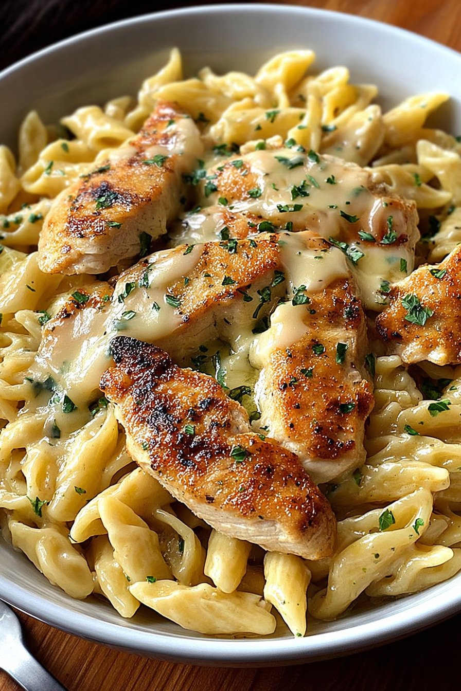 I cook this for weeknights when time feels short and hunger grows fast. A single skillet sits on the stove and does all the work. Pasta simmers in broth and cream. Chicken turns tender. Parmesan melts smooth. Garlic stays warm, never harsh. We eat and relax.