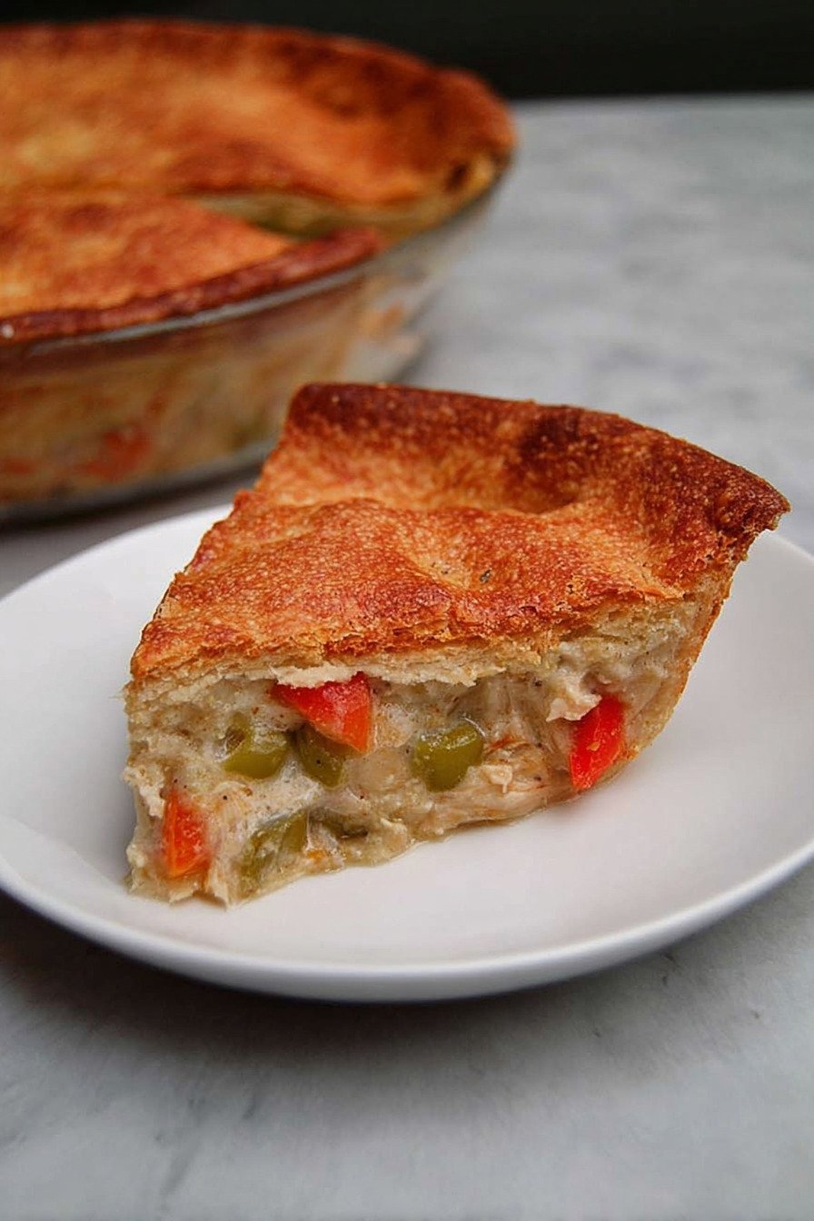 Think of a skillet chicken pot pie that skips fuss yet keeps charm. The creamy filling hugs small cubes of carrot and pea. A flaky crust seals the heat. For me this sits in the easy file and earns a repeat.