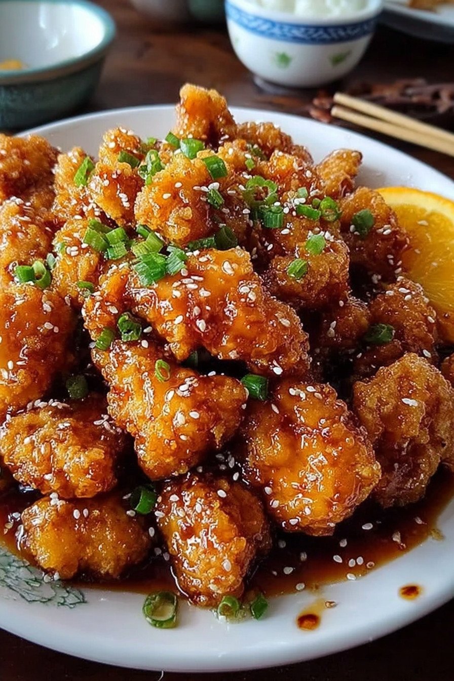 Step four coat and serve Return chicken to the pan and toss until every piece shines. Taste and adjust salt or sweetness. Serve with rice and a squeeze of fresh orange.
