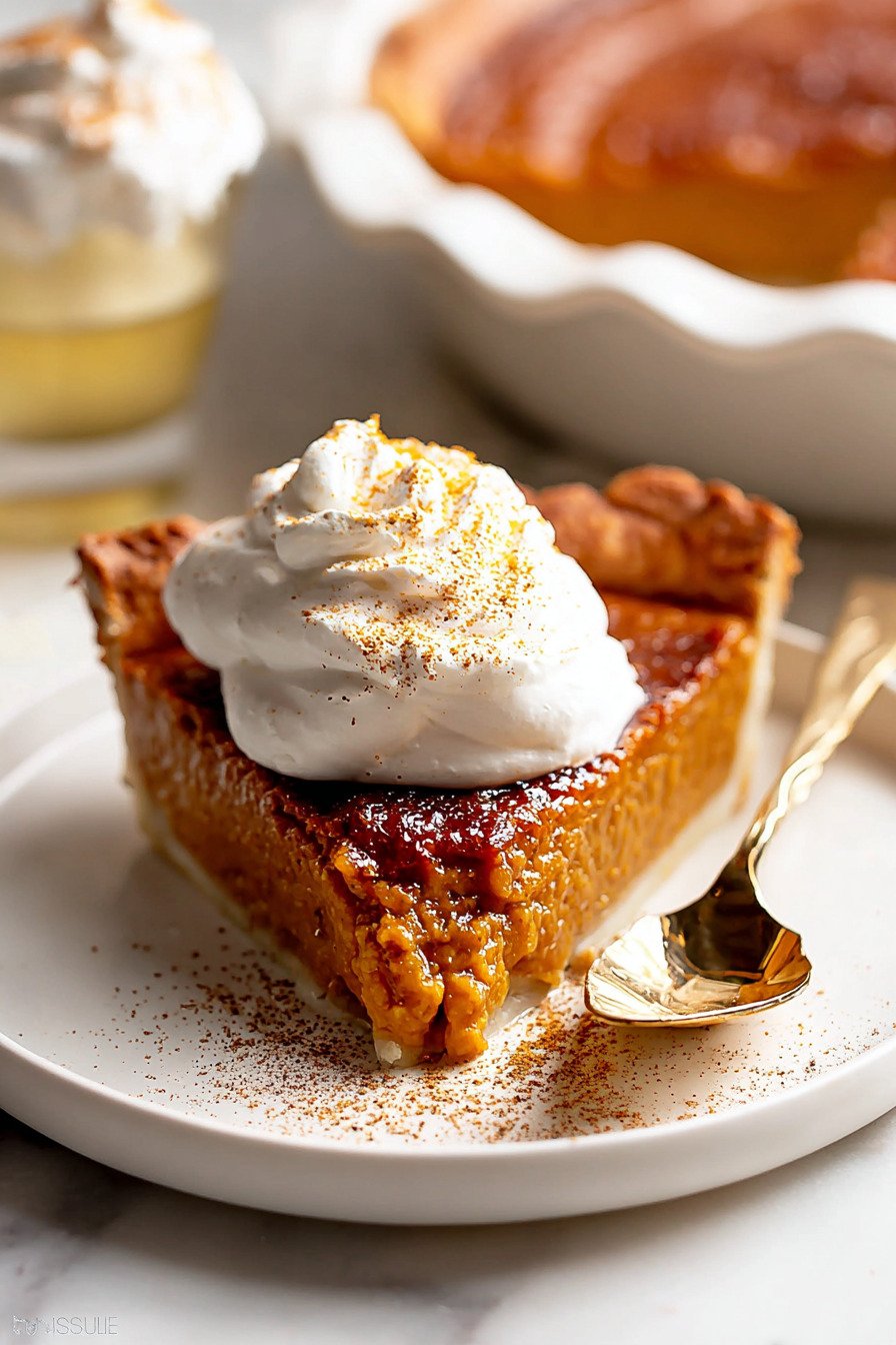 I love the quiet moment when a spoon hits a glassy sugar lid and the crack shatters. Under that thin shell waits a cozy slice that tastes like fall. This pumpkin pie recipe gives you that little thrill with every bite. I bake it when the air turns crisp and the market brings real pumpkin. The filling comes smooth and warm with spice. The top cools clear and sweet. Friends gather and the pie goes fast. I smile and serve small wedges then go back for more. It is a simple pumpkin pie recipe that still feels fresh. You can make a healthy pumpkin pie recipe with light cream and less sugar. You can use a vegan pumpkin pie crust and dairy free cream. You can roast and mash your own squash for a fresh pumpkin pie recipe. I often do that when time allows. The flavor sings. If you want a pumpkin pie recipe with real pumpkin this one works. It reads like a real pumpkin pie recipe and it tastes like one too.
