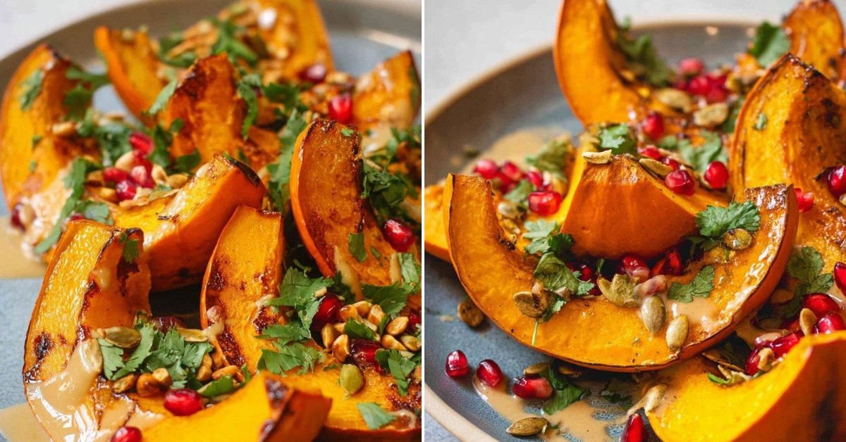 I roast pumpkin when the air turns crisp and the oven warms the kitchen. These wedges go tender and golden. The tahini turns creamy and bright with lemon. Pomegranate pops. Herbs wake up the plate. We eat and grin. This take fits roasted pumpkin recipes that work on busy nights. I lean into a pumpkin curry recipe vibe with warm spice. It joins pumpkin recipes savory that feel simple. You get savory pumpkin recipes that cook clean. It lands in recipes with pumpkin that you keep. It doubles as pumpkin dinner recipes when you add grains or greens. Pumpkin spice recipes do not have to be sweet. This one keeps it cozy and bold. I slice a sugar pumpkin. I toss with oil and salt. I roast until the edges brown and the center yields. Then I spoon tahini sauce over the top. We finish with mint cilantro pecans and pomegranate. The tray hits the table. Plates get quiet. Good sign.
