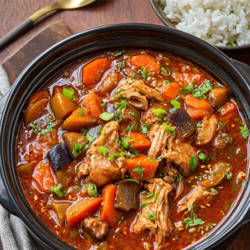 I make this when the day runs long and the house needs a warm, kind smell. Tender chicken sits in a deep red sauce with gochujang, soy, garlic, and a soft hint of sesame. The slow simmer keeps the broth clean and bright. I spoon it over sticky rice and the bowl goes quiet. Low Calorie Chicken Recipes fit my week and this one keeps me full without fuss. It lands in the space I call calm dinner. We all crave easy wins. On busy days I lean on 3 hour crockpot recipes and the plan stays simple. Some nights I use my little trick from 3 ingredient crockpot recipes and keep the prep light. Friends swap ideas for Bbq chicken legs crockpot and we laugh while the pot does the heavy lift. I check my notes for 300 Calorie Meals and smile when this stew fits right in. I like clear structure and Calorie Controlled Meals help me stay steady. I built this bowl for balance. Strong flavor meets a gentle finish. You taste heat, then sweet, then a mellow nutty note. The sauce clings to each bite and the steam carries a soft kick. It works for Calorie Deficit Recipes and for anyone who just wants dinner to feel kind. We cook, we eat, we feel better, and that simple rhythm holds.