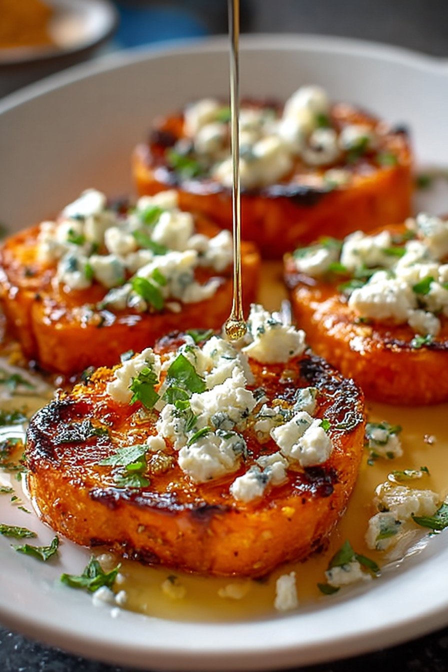 2) Easy Roasted Sweet Potato Rounds with Honey & Feta Recipe