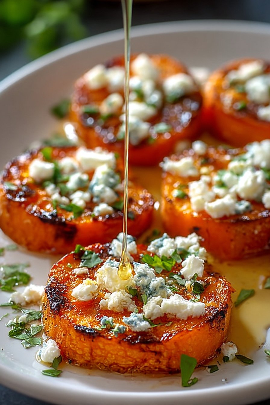 - 9) Roasted Sweet Potato Rounds with Honey & Feta