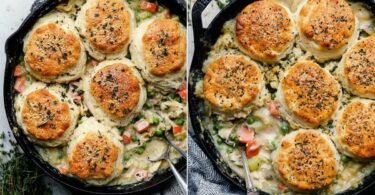 One Pot Chicken Pot Pie with Buttery Biscuits