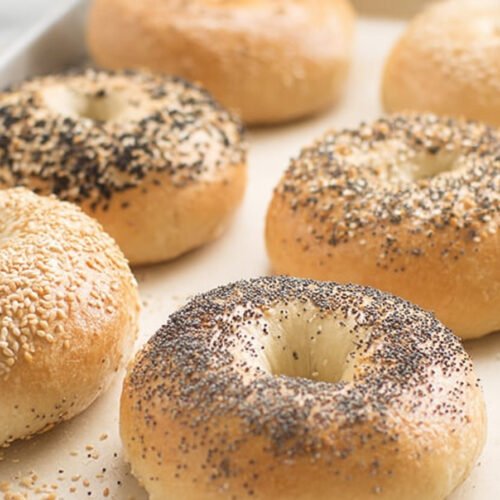 For the best results, always use bread flour rather than all-purpose flour. The higher protein content is what gives this bagel recipe its signature chewiness. Kneading thoroughly is equally important, as it builds the gluten needed for structure.