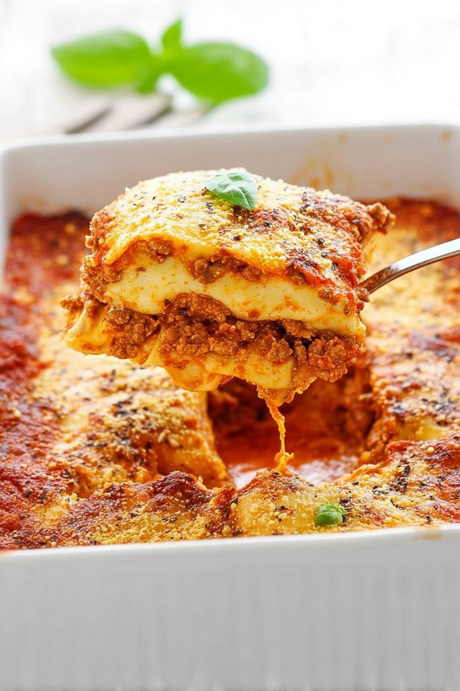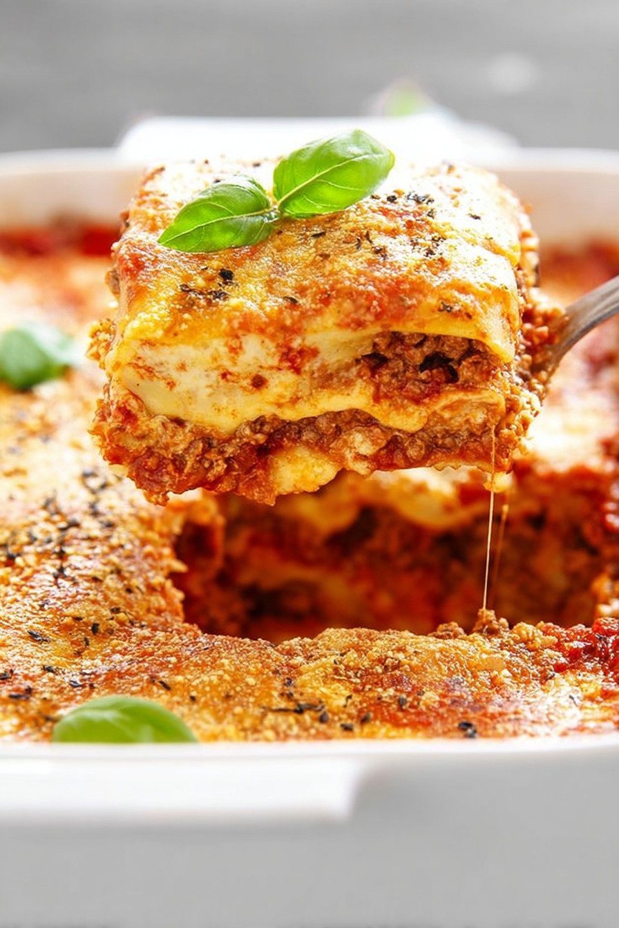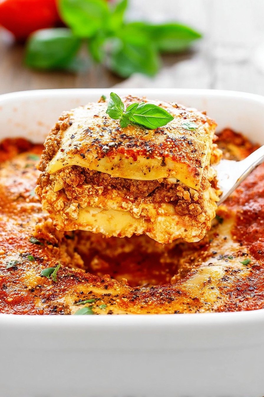 Ground Beef This forms the hearty base of the dish, adding rich flavor and protein that makes the lasagna satisfying and filling.
